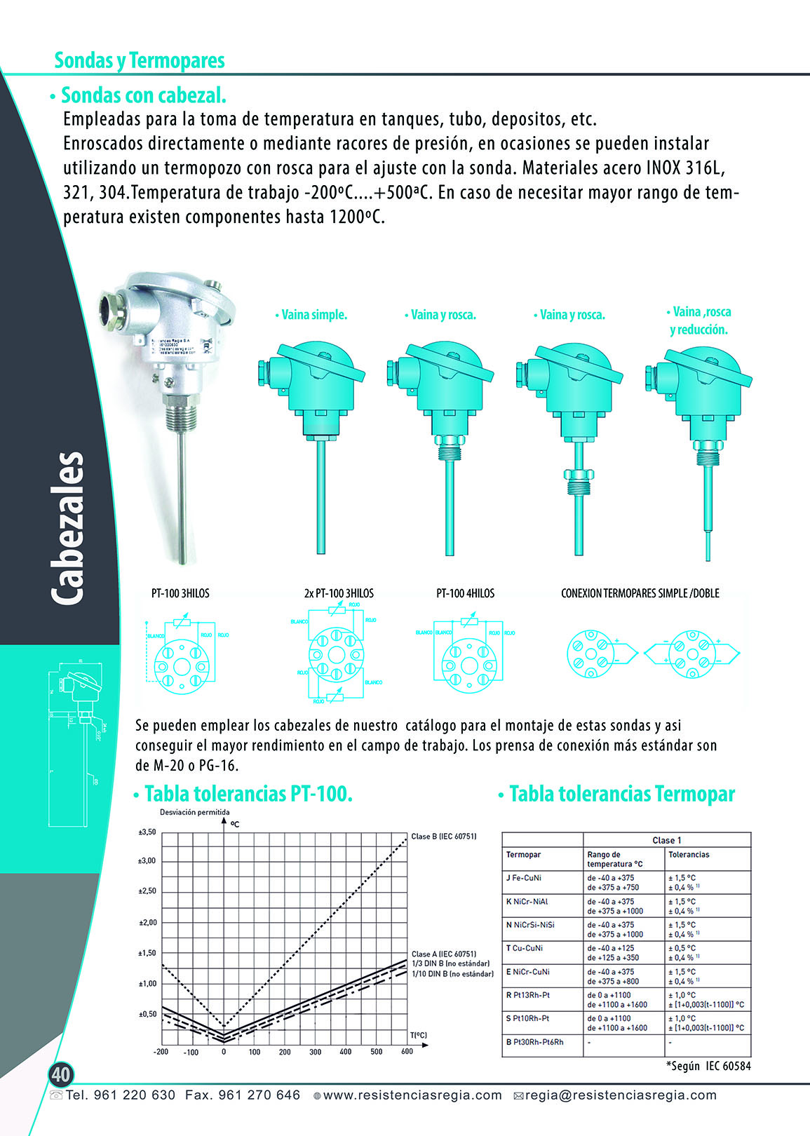 Used to take temperature in tanks, tubes, tanks, etc. They can be manufactured in PT100, PT100, PT500, Thermocouple j,k,s.