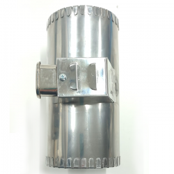 Resistance whose flange is independent of the heating body with the Allen fastening. The connection system is a quick-plug plug with a maximum of 10 Amps; This is mounted on a small bridge. The opening of the resistance is in the same position as that of the closure of the overflange, allowing easy lateral placement on the machine. The power is up to 4W x Cm². Upon request, the location of the clasp and plug can be varied, as well as drills, holes and probe holders can be made.